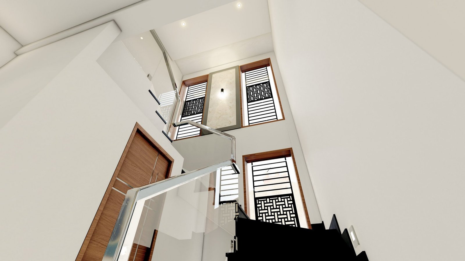• MS Railing (Balcony & Staircase) finished with enamel paint aesthetically designed & fixed to wall.