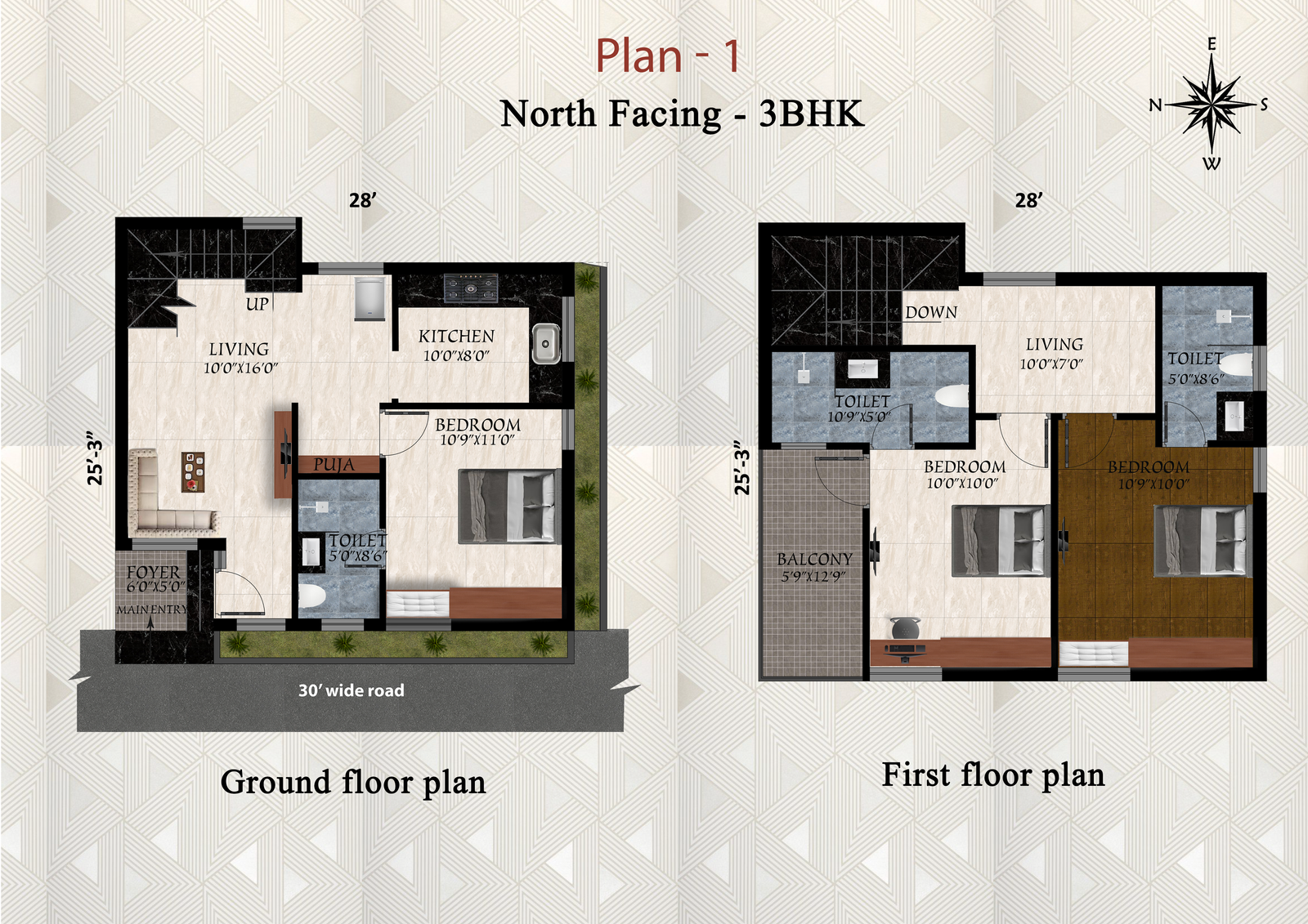 • RCC combined load bearing Framed Structure and Bricks used for External/Internal walls
