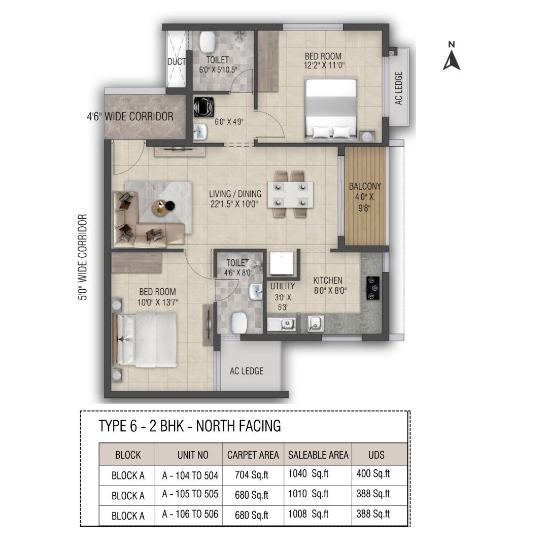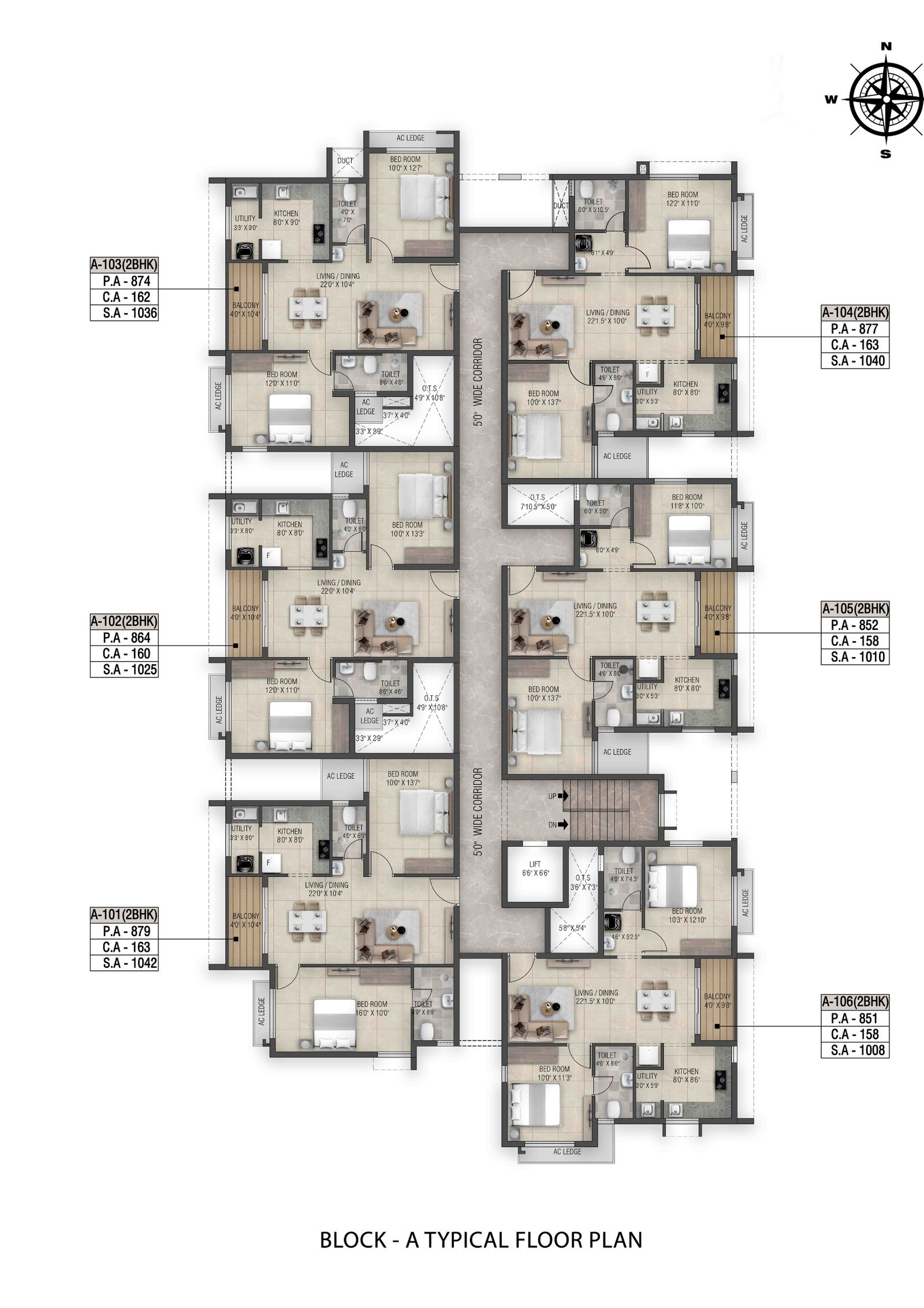 Modern Building Design The G+5 structure in two blocks (A & B) is designed for optimal ventilation, natural light, and modern living.